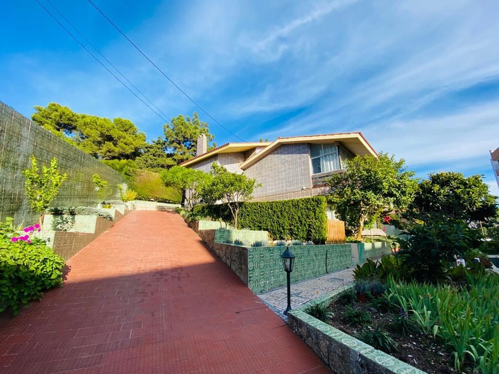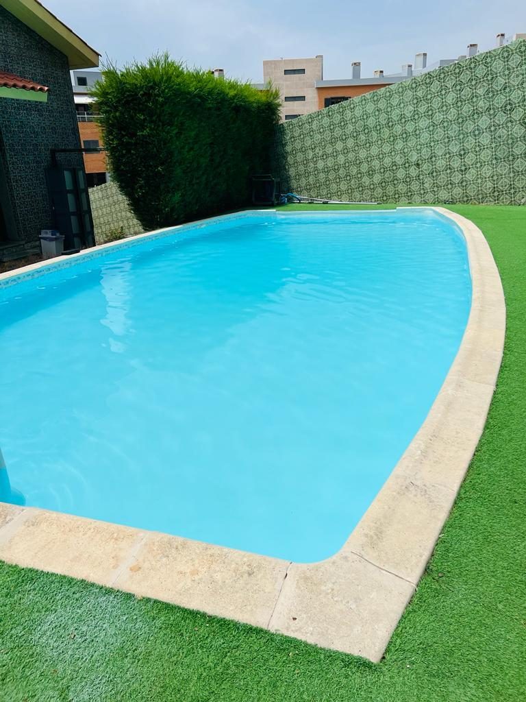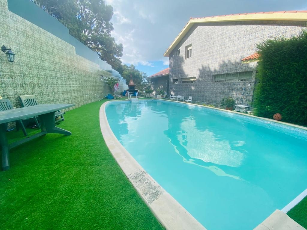 Our most extraordinary space. A private villa with pool, garden, traditional Portuguese azulejo tiles, and panoramic views over the Tagus river and Ponte 25 de Abril.